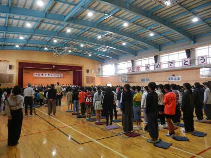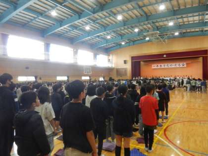 全校児童が一緒に校歌を歌います。第七小学校の校歌はすてきです。