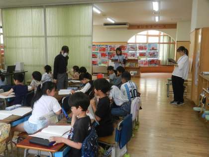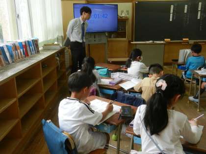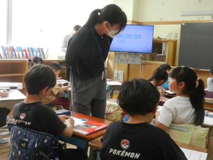担任の先生は、子供たちの寄り添いながら机間指導を行います。