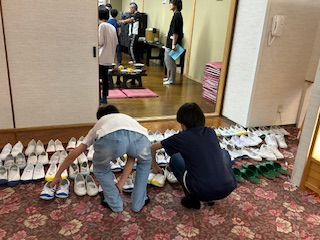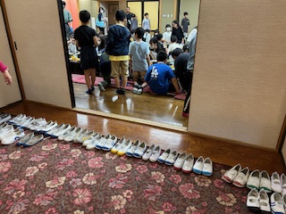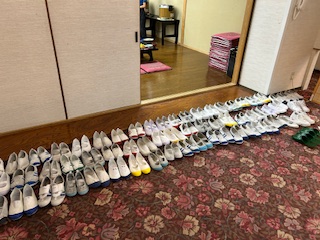 大広間の前に上履きを並べます。きれいです。