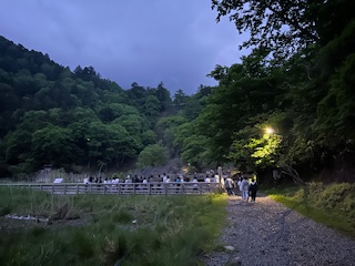 カエルでしょうか。鳴き声が聞こえます。昼間とは違った雰囲気ですり