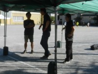 令和7年10月17日(金)。テントの中に椅子を置きます。本部席として係児童や...