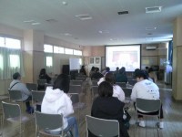 令和7年11月28日(金)。校舎1階の多目的室は、パブリックビューイングの会...