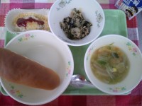 ★今日の献立★* パン* なすと豆腐のグラタン* ジュリエンヌスープ*...