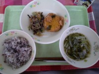 ★今日の献立★* ご飯* 豆腐ハンバーグおろしソース* 茎わかめのきん...