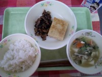 ★今日の献立★ * 八王子産の白いご飯 * ぎせい豆腐 * はっちくん...