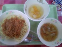 ★今日の献立★・八王子産ゆず使用* スパゲッティミートソース* 白菜スープ* ゆ...