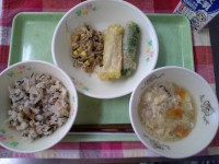 ★今日の献立★:入学・進級お祝い献立* 赤飯* 松風焼き* 野菜の彩り和え* お...