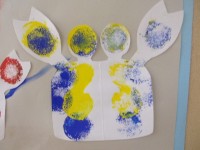 令和7年11月13日(木)。スタンプに絵の具を付けます。絵の具を付けたスタン...