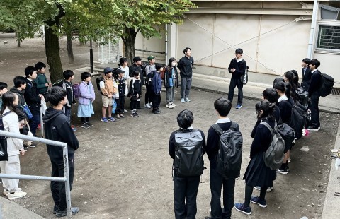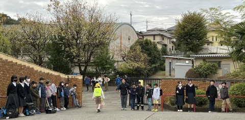 担任の先生のお誘いもあり、小学生が元気にあいさつを交わしてくれました。第七小学校の校長先生が「中学生は立派だなあ」と褒めてくださいました。