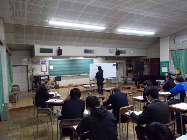 12月24日水曜日、授業後に、先生方は「特別支援教育」をテーマに、心理相談員の先生を講師としてお招きし、校内研修を行いました。