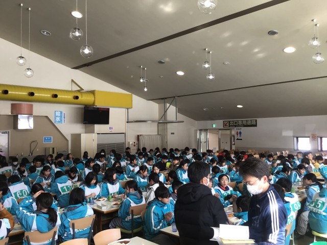 第一学年スキー教室は昼食の時間に入り、美味しくカレーライスをいただいています。班ごとに集まるなど忘れてしまっている様子ですが、何とか乗り越えていただきたいです。