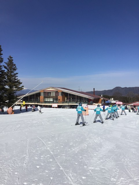 第一学年スキー教室二日目の講習第一弾です。本日も絶好のスキー日和です。初心者も上級者も昨日より確実にレベルアップしているようです。
