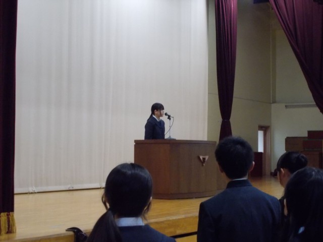 生徒代表の言葉では、生徒会役員の方が、チャレンジ精神をもつことなどの呼びかけを、下を向かずに立派に伝えており、七中生の良き伝統を感じました。