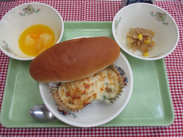 *献立*ミルクパンポテトグラタン大根とツナのサラダオレンジポンチ牛乳
