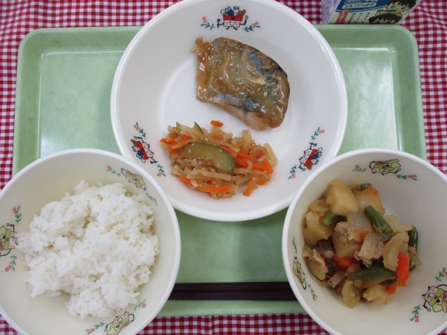 *献立*ごはんさわらの西京みそ焼き肉じゃが和風サラダ牛乳☆きょうの八王子産☆きゅ...
