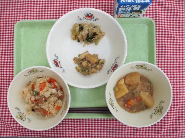 給食では、鳥取県の伝統的な食材「あごちくわ」を使って作りました。