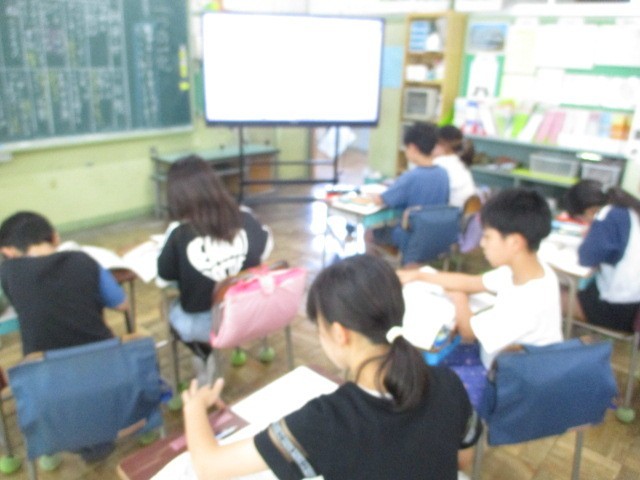 9月26日(金)4年生の教室で、国語の授業をしていました。教科書の物語教材「一つの花」の授業です。戦争中の様子と10年後(戦後)の様子を比べながら、違いを考えていきました。これまでしっかりと学習してきたからか、子どもたちは、違いをプリントにまとめ、すすんで発表することができました。