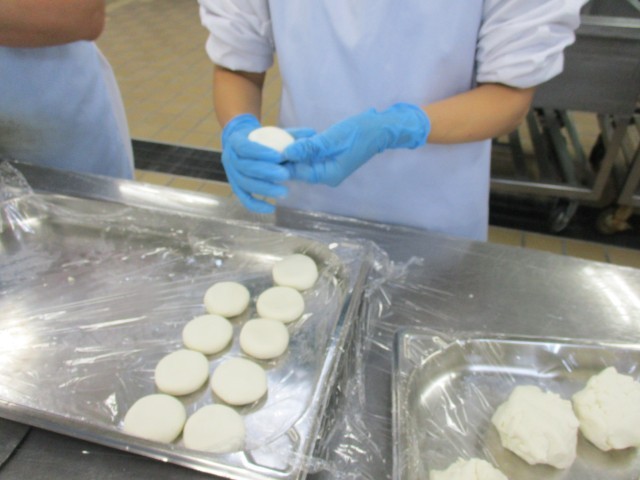 お月見だんごは調理員さん総出で、1個ずつ丁寧に作りました。