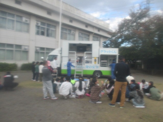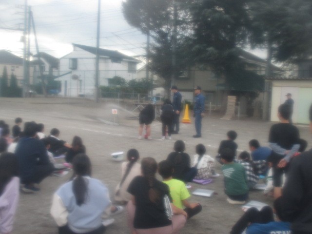 10月28日(火)5時間目に、総合防災訓練がありました。地震・火事からの避難のほか、この日は、消火器を使用した消火体験と起震車体験を行いました。消火訓練では、5年生の代表児童が全校児童の前で、水の入った消火器を的に向けて放水しました。八王子消防署の方からご指導いただき、うまく的に当てることができ、終えた後には大きな拍手が起こっていました。その後、4年生と5年生が校庭に残り起震車体験を行いました。八王子の防災課所有の起震車を使用して行いました。みんなが交代で地震の揺れを体験し、子どもたちは、改めて地震の怖さを感じていました。訓練にご協力いただいた皆様、ありがとうございました。