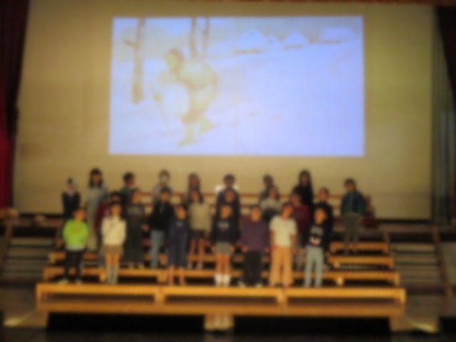 肝心の群読の部分では、声がゆっくりはっきり出せるようになり、役割に合わせた動きもスムーズになってきました。