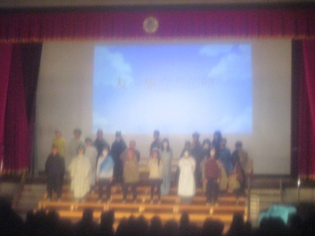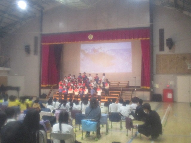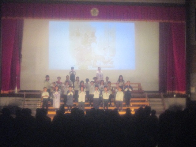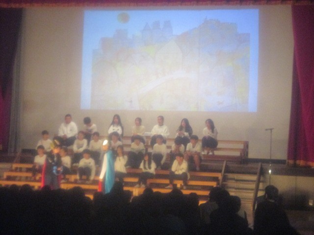 11月28日(金)群読発表会の児童鑑賞日でした。3年、1年、5年、2年、4年、6年の順番で発表を行いました。他の学年の子に見られるという思いが、子どもたちのスイッチを入れたのか、これまでの練習の中で、どの学年も一番見応えのある発表でした。残念ながら6年生は明日、11月29日(土)から12月2日(火)まで学級閉鎖となり、29日(土)の保護者鑑賞日で、実際に舞台で発表する姿をご覧になることはできません。代わりに、6年生の発表は、児童鑑賞日の様子をビデオで流します。(6年生の保護者の方には、別途何らかの形で子どもたちの演技をご覧いただく機会を設ける予定です)。これまで準備に取り組んできた子どもたちの気持ちを考えると非常に残念ですが、苦渋の決断をさせていただきました。