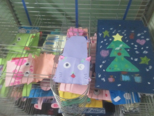 12月9日(火)1年生が、図工室で工作をしていました。クリスマスツリーの絵とパクパクくんという工作をしていました。2年生は、教室で書写(硬筆)をしていました。写真は、左の2枚が1年生の図工、右の1枚が2年生の書写の様子です。
