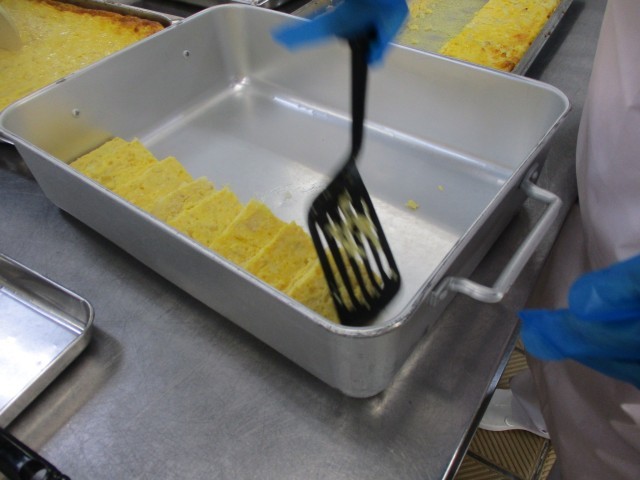 給食では、調理員さんが丁寧に作ってくれたので、しっとり仕上がりました。