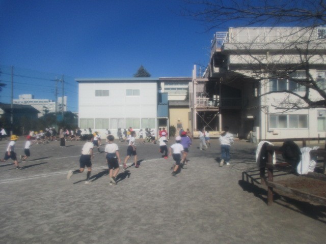 12月18日(木)インフルエンザの流行で開始期間が変更になった体力向上の取組の一つである「RUNRUNタイム」が、この日から始まりました。校庭に集まった子どもたちは、準備体操をした後で3分間走ります。目標は同じペースで走り続けることです。翌週には5分間走と、時間を伸ばして実施する予定です。この日は天気も良く、みんな気持ちよさそうに走っていました。終わった後には、「6週走った」など、自分の頑張りを友だちと一緒に報告し合っていました。