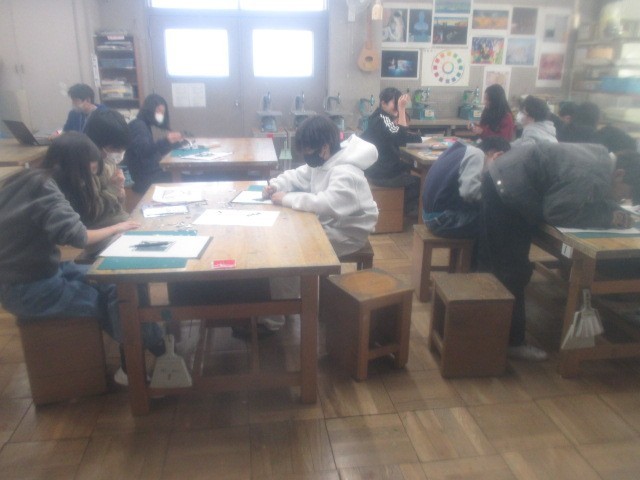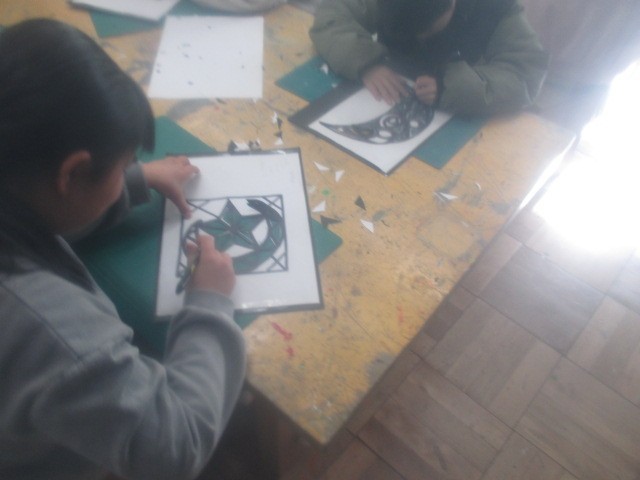 2月2日(月)6年生が図工室で授業をしていました。この日は、ステンドグラス作りです。出来上がった作品が飾られるととてもきれいで、他学年からも毎年好評な作品です。初めに図工の先生より作業の進め方やカッターの使い方などについて説明があり、その後、子どもたちは作業に取り掛かりました。カッターを使うので、必要以外のおしゃべりはなしです。ざわついてくると時々先生からの注意があり、子どもたちは、1時間集中して作業を行いました。細かな作業も器用にこなす姿は、さすが6年生。完成した作品が飾られるのが今から楽しみです。これらの作品は、卒業に向けた雰囲気づくりにも貢献します。