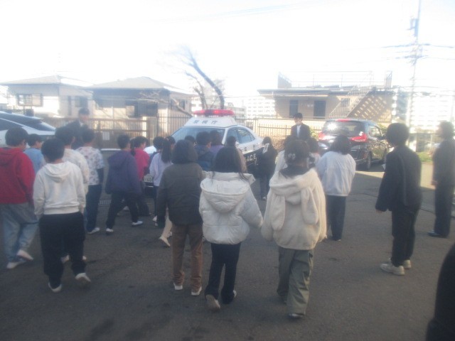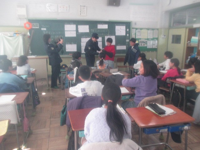 2月10日(火)3年生の教室に、八王子警察の2名の方にお越しいただきました。子どもたちが警察官の仕事について直接質問して、答えていただく形で学習を進めました。女性の方は、警察署内で着用する制服を、男性の方は、交番で勤務する際に着用する制服をそれぞれ着て、お越しいただきました。学習の後半では、駐車場に行き、パトカーを間近で見学しました。音を小さくしてサイレンを鳴らしたり、赤色灯を高く上げたりしていただき、子どもたちは、興味深げに学習に臨んでいました。八王子警察署員の方、第八小学校にお越しいただきありがとうございました。
