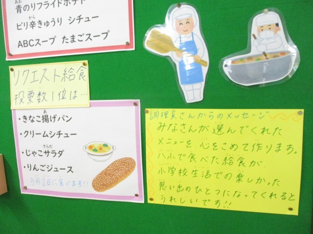 朝から「今日はリクエスト給食だよ!」と話す声が色々なところから聞こえ、子どもたちが楽しみにしている様子が伝わってきました。