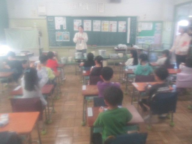 4月16日(木)1年生の給食が、17日(金)から始まります。この日は、翌日から始まる給食に備えて、配膳や片付けの練習をしました。牛乳パックは、飲み終えた後に紙を開いて片付けるので、実際に空の牛乳パックを使って開く練習をしました。なかなか難しいのですが、みんな頑張って練習に取り組んでいました。