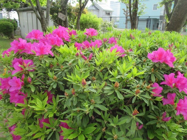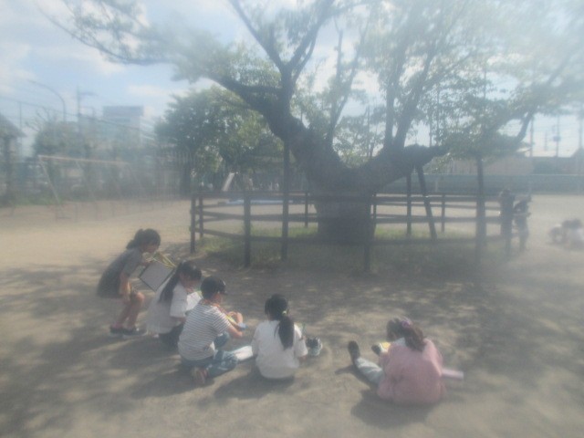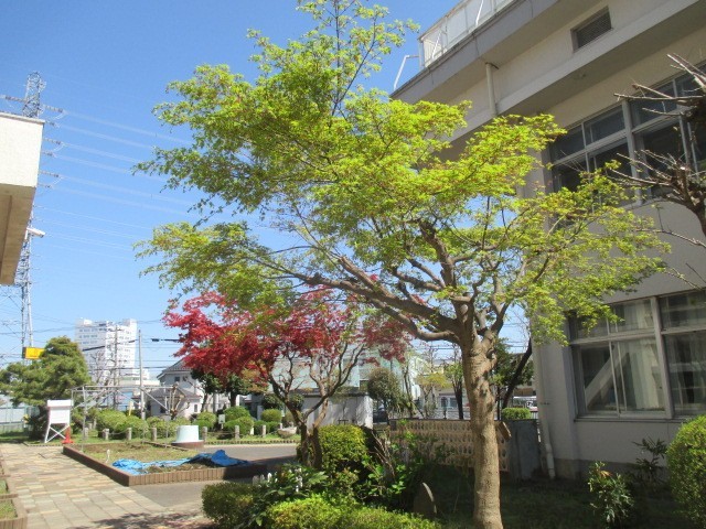 4月20日(月)校庭では、藤の花やつつじがきれいな花を咲かせています。葉は黄緑色の明るい色で、新緑が鮮やかに映える季節です。午後の校庭では、3年生が体育を、4年生が理科で桜の観察をしていました。気候も外で過ごすのがちょうどよい頃で、子どもたちは、伸び伸びと学習に取り組んでいました。