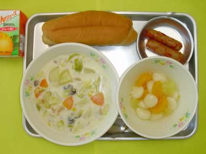 ウインナーサンド クリームシチュー フルーツ白玉 オレンジジュース