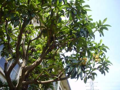中庭に一本びわの木があります。日光がよくあたる箇所にはいくつか実がつい