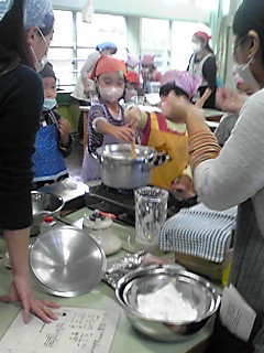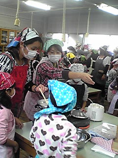 保護者の方々がたくさんお手伝いに来てくれました おいしい豆腐ができるといいな