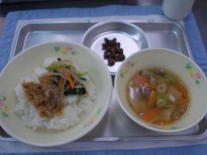 ビビンバのご飯の上にのせる具材に、豚肉と切干し大根を使っています。