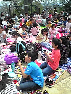 高尾山頂に全員元気に到着しました。楽しいお弁当です。