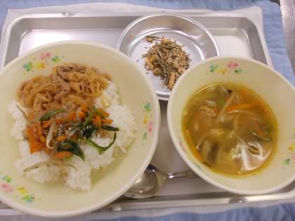 今日は虫歯予防デーにちなんだ献立でした。いりこ、アーモンドを使った