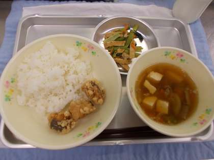 今日は白身魚のホキの香りあげでした。しょうが、にんにく、しょうゆ