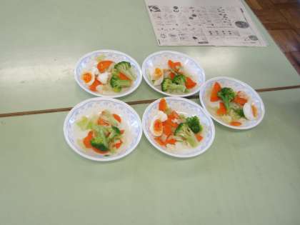 メニューは「カラフルコンビネーションサラダ」と「ゆで卵」です。