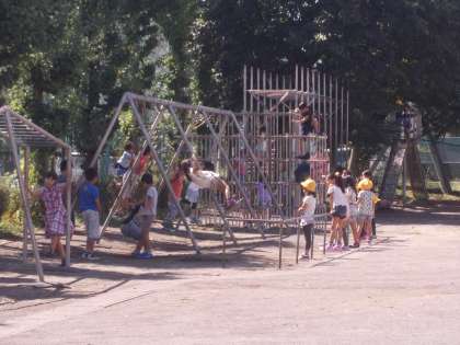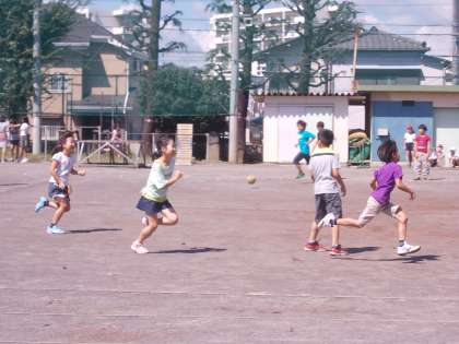 久しぶりの青空。 休み時間、子供たちは元気いっぱい遊んでいます。
