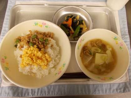 今日は彩りの良い「とりそぼろ丼」でした。
