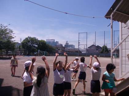 休み時間には、気持ちよさそうに浴びている子供たちがたくさんいます。