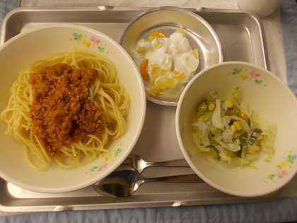 給食のミートソースは玉ねぎ、にんじん、セロリーの