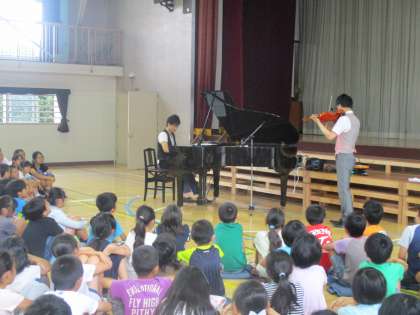 エバリーに来ていただき、体育館でコンサートを開催しました。