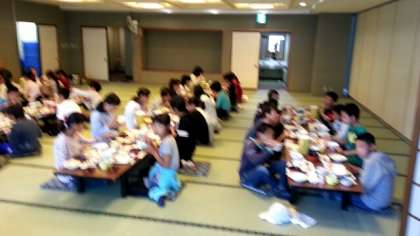 宿舎に戻って朝食です。ハイキングに備えてしっかり食べました。