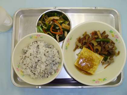 ごまごはん 豆腐の田楽風 きんぴら 小松菜と油揚げの煮びたし 牛乳