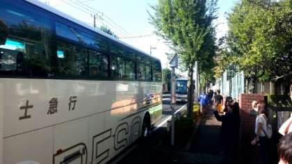台風一過の青空のもと予定通り学校を出発しました。気を付けて行ってきます。