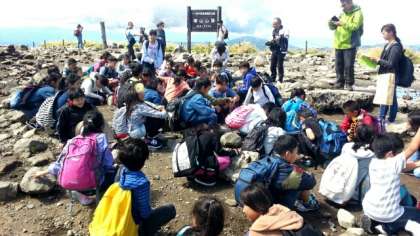 リフトに乗り車山山頂まで来ました。集合写真を撮ってこれからハイキングです。